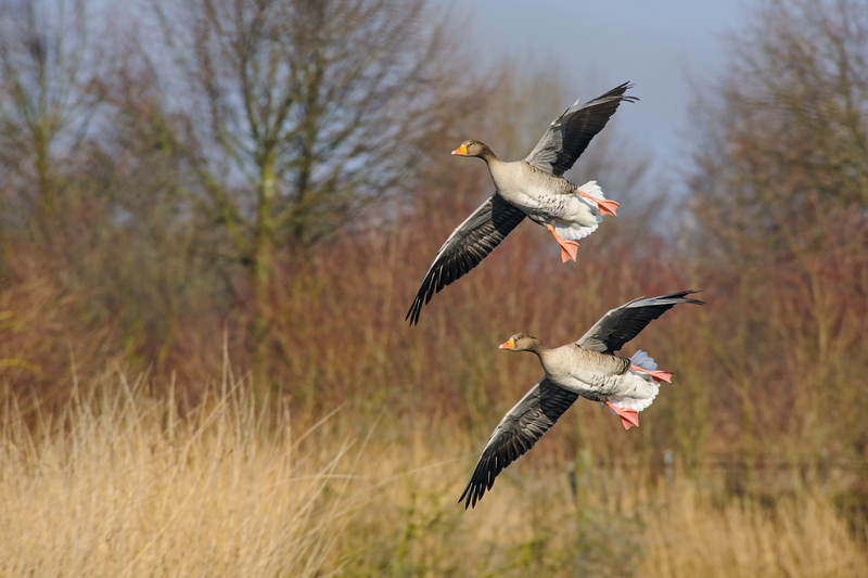 Два серых гуся в полете