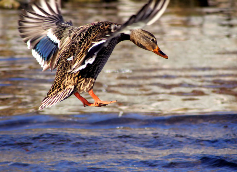 Кряква утка садится на воду