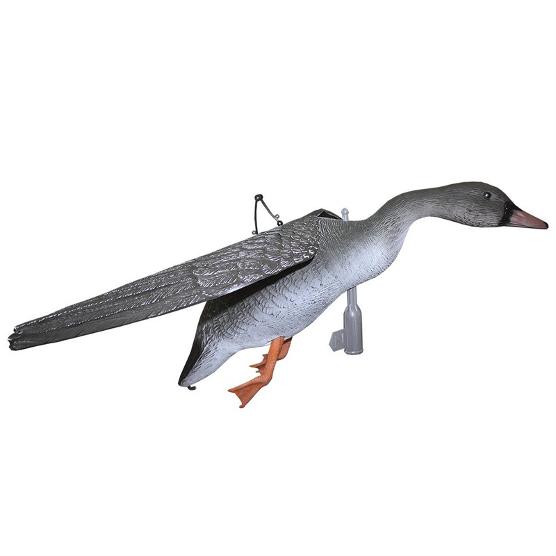Объемная пустотелая чучалка итальянской фирмы SPORT PLAST выполнена из ударопрочного пластика. Реалистичная, "живая" расцветка. Иммитирует взлет/посадку гуся гуменника. Можно устанавливать на поле или в лужу. Данную модель подсадного гуся обычно используют в комбинации с другими чучелами и профилями во время охоты на гусей, оно оживляет высадку и делает её более реалистичной.
