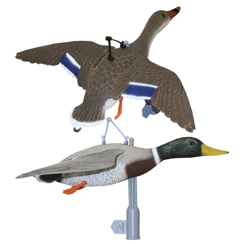 Кряква утка и селезень летящие Sport Plast FL01-02. Комплект состоит из 2 штук: селезень и самка. Цена за комплект. Чучела имитируют лятещего селезня и самку кряквы. Устанавливаются стационарно на шест в землю или в воду на берегу водоема на небольшой глубине. Использование данных чучел позволяет увеличить разнообразие поз установленных вами муляжей и "оживить" стаю чучел, предназначенных для подманивания дичи, создавая более естественный вид высадки. Кроме того, за счет установки данных муляжей на шест нужной длины, приманки поднимаются над землей или водой и их лучше видно на расстоянии. Чучела летящего селезня и утки Спорт Пласт FL 01-02 выполнены из твердого не сминаемого пластика. Изготовлены в натуральную величину. Чучела объемные, пустотелые и очень легкие. Поверхность чучел FL 01-02 рифленная, повторяющая контуры оперения живой птицы. Качественная многоцветная покраска матовой не бликующей краской. Краска отлично держится на чучелах в течении длительного времени. В верхней части чучел отверстие в которое вставляется пластиковый зацеп для подвешивания чучела к шесту. Лапы и крылья у чучел съемные. В нижней части отверстие, в которое вставляется пластиковый адаптер для установки чучел на шест.
