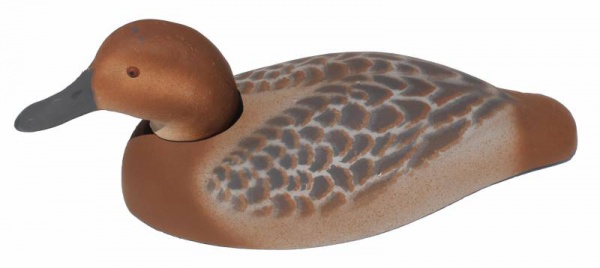 Чучело утки "Красноголовый нырок утка". Легкое, компактное чучело, предназначенное для приманивания летящих уток. Изготовлено из полистирола. Голова съемная, крепится к туловищу на саморез (вкручивается). Для транспортировки голова может сниматься и укладываться в специальную нишу (в нижней части туловища утки), что делает данные чучела более компактными по сравнению с аналогами и позволяет брать большее кол-во. Очень реалистичная раскраска (одна из лучших на рынке).