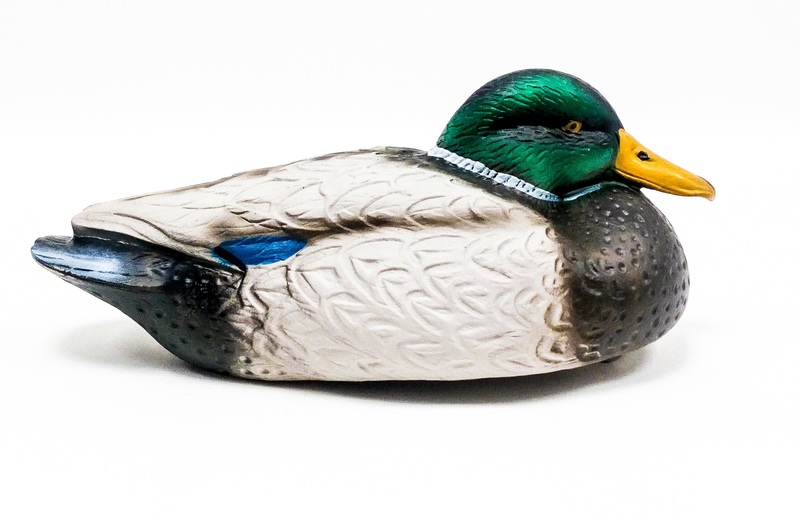 Чучело селезня "кряквы" сминающееся надувное. Поза - "отдыхающий" (голова прижата к телу). Чучело изготовлено в натуральную величину утки кряквы. Чучело плавающее, бескилевое. Предназначено для установки на воду или на берег водоема для подманивания уток на охоте или в декоративных целях (украшение пруда). Плавание на воде осуществляется за счет воздушной подушки под дном изделия. Снизу чучалки имеется оригинальный клапан для закачивания и спускания воздуха, который так же препятствует поступлению воды внутрь чучела. Выступающая круглая часть дна должна быть утоплена внутрь изделия. Это обеспечивает надежную устойчивость на воде. Отсутствие киля и плоское основание позволяет установливать данные чучела на землю. Чучела изготовлены из пластизоля ПВХ. Чучело мягкое на ощупь и легко сминается, что значительно уменьшает размеры чучела при транспортировке. В смятом виде займет места в 2 раза меньше чем аналогичные чучела из пластика. "Живая" реалистичная покраска, которая не выгорает на солнце и не трескается при скручивании. В передней части основания чучела имеется кольцо для подвязки шнура. При попадании дроби - держатся на плаву. Размеры чучела (д*ш*в): 32х16х13 см. Вес - 400 грамм.