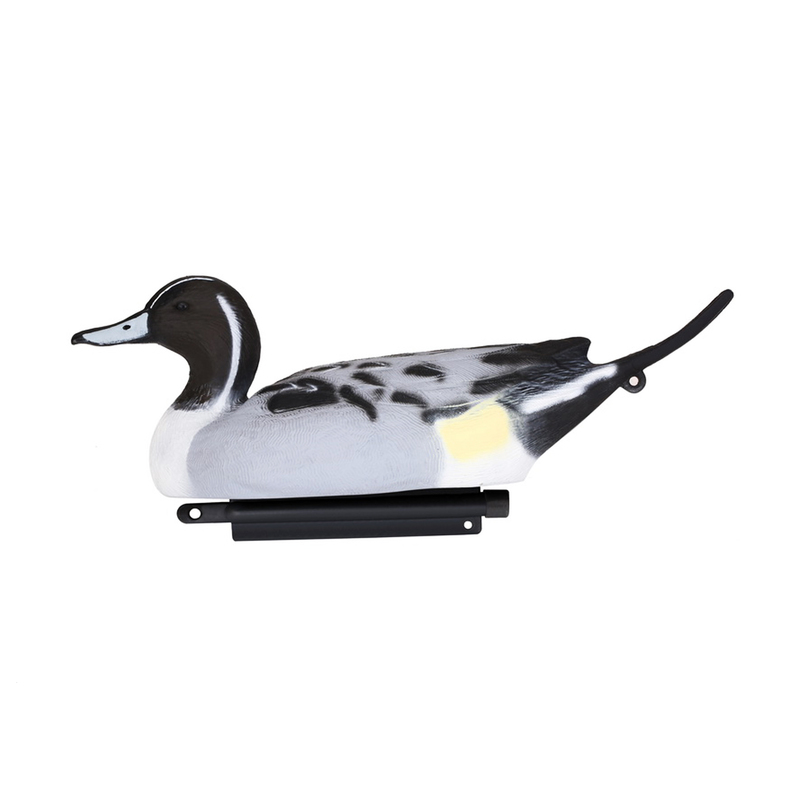 Чучело утки "Шилохвость" (селезень). Чучело сминаемое, полнообъемное, эластичное, с огруженным килем. Предназначено для установки на воду. Цена за 1 штуку. Голова расположена вертикально. Высокая реалистичность. Теперь чучело от пят до головы в точности повторяет своего живого собрата. Поверхность чучел матовая рифленная с детальной прорисовкой пера (не бликуют). Чучела отлично переносят скручивания и другие механические воздействия, неприхотливы в использовании. Температурный диапазон применения -40 до +40 С. Имеют малый вес и объем в сложенном виде, что облегчает их транспортировку и позволяет взять на охоту большее количество. В нижней части чучела огруженный (утяжеленный) киль, который обеспечивает высокую устойчивость на воде даже в условиях сильного ветра. В киле имеется 2 отверстия для крепления шнура или грузила. В хвостовой части чучела - отверстие для поступления воздуха с клапаном и заглушкой, а так же петля для крепления шнура. Легко сминаются для транспортировки, быстро собираются, занимают мало места в сложенном (смятом) виде. В собранном виде принимают размеры сопоставимые с размером живой утки. Вес одного чучела 180 грамм. Длина одного чучела - 44 см, ширина - 15 см, высота - 16 см. Не боится попадания дроби (возможно продолжение эксплуатации при незначительных повреждениях).
