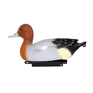 Чучело утки "Свиязь" (селезень). Чучело сминаемое, полнообъемное, эластичное, с огруженным килем. Предназначено для установки на воду. Цена за 1 штуку. Голова расположена вертикально. Высокая реалистичность. Теперь чучело от пят до головы в точности повторяет своего живого собрата. Поверхность чучел матовая рифленная с детальной прорисовкой пера (не бликуют). Чучела отлично переносят скручивания и другие механические воздействия, неприхотливы в использовании. Температурный диапазон применения -40 до +40 С. Имеют малый вес и объем в сложенном виде, что облегчает их транспортировку и позволяет взять на охоту большее количество. В нижней части чучела огруженный (утяжеленный) киль, который обеспечивает высокую устойчивость на воде даже в условиях сильного ветра. В задней части чучела - отверстие для поступления воздуха (открытое, без заглушки). В задней и передней части чучела имеется 2 отверстия для крепления шнура или грузила. Легко сминаются для транспортировки, быстро собираются, занимают мало места в сложенном (смятом) виде. В собранном виде принимают размеры сопоставимые с размером живой утки. Вес одного чучела 130 грамм. Длина одного чучела - 30 см, ширина - 12 см, высота - 16 см. Не боится попадания дроби (возможно продолжение эксплуатации при незначительных повреждениях).