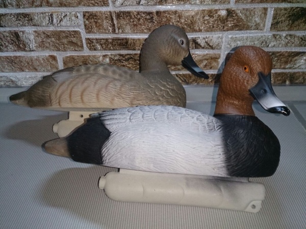 Комплект утиных чучел "Красноголовый нырок" производства "62 Breite" серии "Весенний Сезон". Комплект состоит из 8 штук: 3 селезня и 5 самок. Цена за комплект. Материал - твердый (не сминаемый) пластик. Размер чучел приближен к натуральному. Головы съемные, что делает их более компактными при транспортировке к месту охоты и позволяет взять большее количество чучел по сравнению с аналогами. Покраска выполнена вручную. Очень качественная "реалистичная" раскраска матовой не бликующей краской с детальной прорисовкой пера. Киль взвешенный, при любом ветре муляж не кренится на бок. В киле имеются отверстия для крепления шнура. Вес 1-го чучела 330-350 грамм. Размеры 1-го чучела (ДхШхВ): 31х14х19 см. Вес комплекта нетто - 2700-2800 грамм.