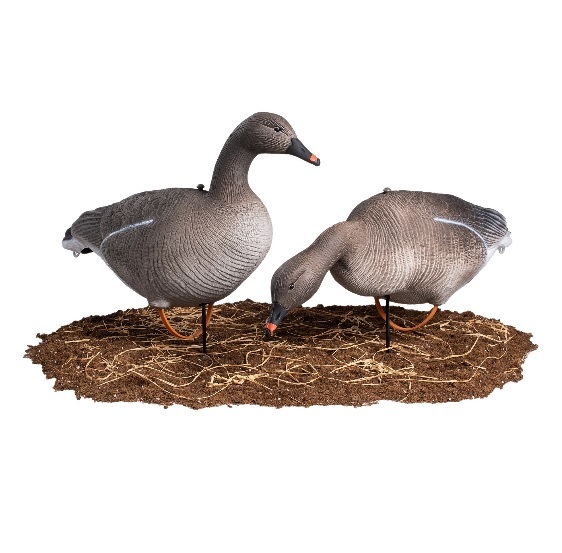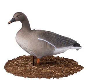 Сминаемые чучела гуменника серии Softplast от фирмы North Way. Цена за комплект из 10 шт. Чучела гуменника North Way серии Softplast производятся из качественного мягкого пластика, разработанного компанией. Цена за комплект из 10 штук. В комплекте: 8 кормящихся и 2 сторожевых. Данная модель чучел предназначена для установки на поле или болото. Чучела объемные, полнокорпусные, сминаемые, пустотелые. Отличаются легкостью, компактностью за счет возможности смятия. Хорошо восстанавливают форму. Материал чучел North Way Софтпласт отличается прочностью и износостойкостью, что обеспечивает долговечность их использования. Имеют неразрывной шов. Сохраняют эластичность в диапазоне температур от -40 до +40 С. Компактные размеры в сложенном виде позволяют транспортировать на место охоты большее количество. Размер чучел Over Size (размер крупного гуся). Чучела гуменника North Way Softplast G10S очень реалистичные. Качественная многоцветная покраска матовой не бликующей краской с детальной прорисовкой пера и характерных видовых признаков. Вес одного чучела без стойки 300 грамм. Чучела устанавливаются на стеклопластиковую стойку с несъемным пластиковым наконечником длиной 60 см, весом 35 грамм. В обновленной модели второй половины 2020 года съемных лапок нет. Вместо них в комплекте идет силиконовый хлястик имитирующий лапы. При небольшом ветре за счет малого веса чучела начинают двигаться на стойке и создают впечатление "живой", "кормящейся стаи". В задней части чучела большое отверстие, в которое можно просунуть руку для придания формы чучелу. Так же имеется петля для крепления шнура в хвостовой части. Размеры расправленного чучела без стойки в кормящейся позе (ДхШхВ): 68х22х20 см.