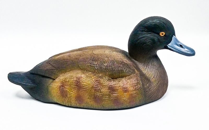 Чучело "Морская чернеть утка" (самка) сминающееся. Активная поза - "плавающая" (голова в вертикальном положении). Чучело плавающее, бескилевое, сминающееся. Предназначено для установки на воду или на берег водоема для подманивания уток на охоте или в декоративных целях (украшение пруда). Плавание на воде осуществляется за счет воздушной подушки под дном изделия. Снизу чучалки имеется оригинальный клапан для закачивания и спускания воздуха, который так же препятствует поступлению воды внутрь чучела. Выступающая круглая часть дна должна быть утоплена внутрь изделия. Это обеспечивает надежную устойчивость на воде. Отсутствие киля и плоское основание позволяет установливать данные чучела на землю. Чучела изготовлены из пластизоля ПВХ (резина). Чучело мягкое на ощупь и легко сминается, что значительно уменьшает размеры чучела при транспортировке. В смятом виде займет места в 2 раза меньше чем аналогичные чучела из пластика. "Живая" реалистичная покраска, которая не бликует, не выгорает на солнце и не трескается при скручивании. В передней части основания чучела имеется кольцо для подвязки шнура. При попадании дроби - держатся на плаву. Вес чучела - 360 грамм. Размеры чучела (д*ш*в): 32х15х14,5 см.