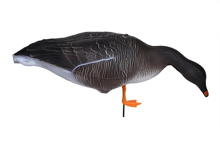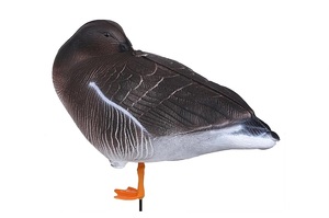 Ультралегкие полнокорпусные сминаемые чучела гуменника серии Super XPE. Артикул G6112X. Комплект из 10 шт. Комплектность: 6 кормящихся+2 сторожевых+1 активный+1 спящий. Исполнение МТ "Антиблик" (матовое гладкое покрытие). Оранжевая съемная лапа (1 шт.), которая надевается на стойку. Стеклопластиковая стойка (60 см). Вес комплекта брутто 1,9-2 кг.