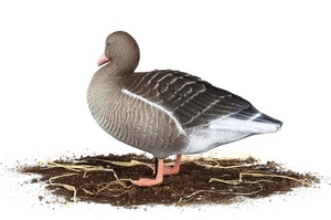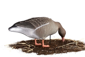 Ультралегкие полнокорпусные сминаемые чучела серого гуся серии Super XPE 3D "Антиблик" производства фирмы "Норс Вей". Цена за комплект из 10 шт. Предназначены для установки в землю на поле или болоте. Комплект состоит из 10 шт.: 6 кормящихся+2 отдыхающих+2 сторожевых. Чучела изготовлены из крайне легкого вспененного полимерного материала (полимер S-XPE). Материал чучел долговечен и износостоек. Они отлично переносят скручивания и другие механические воздействия, неприхотливы в использовании (чучело можно скрутить, сложить пополам). Поверхность гладкая. Высокая реалистичность. Температурный диапазон применения -40 до +40 С. Имеют малый вес и объем в сложенном виде, что облегчает их транспортировку и позволяет взять на охоту большее количество. Особенно это актуально при охоте на болотах. В рабочем виде принимают размеры сопоставимые с размером живого гуся и при этом вес одного чучела без стойки всего 80-90 грамм!!! При небольшом ветре за счет малого веса чучела начинают двигаться и создают впечатление "живой", "кормящейся стаи". В нижней части чучел оранжевые съемные лапки (2 шт), которые вставляются в специальные отверстия в теле чучела, иммитируя гусиные лапы. Чучела легко устанавливаются на стойке, выполненной из прочного композитного стекловолокна с ручной заточкой кончика для установки даже в промерзлый грунт. Длина стойки - 60 см, вес - 40 грамм. Раскраска гуся осуществляется вручную и за годы использования доведена до уровня схожести, безупречно привлекающего живых птиц. Хранить чучела рекомендуется в расправленном или подвешенном виде. Габаритные размеры гуся в собранном виде без стойки: кормящийся - 63х21х19 см (возможно отклонение в 1-3 см). Усиливающие кольца в районе брюха и на спине чучела увеличивают срок службы изделия, предотвращая механические повреждения шва чучалки. Так же в комплекте со стойками идет "фиксатор" - круглая шайба, которая устанавливается на стойку под чучелом. Чучело устанавливается на этот фиксатор, а не на землю, благодаря чему его проще устанавливать на нужной высоте, оно более устойчиво, лучше вращается на стойке и меньше взаимодействует с водой и землей (т.е. лучше сохраняется).