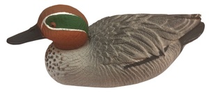 Чучело утки "Чирок-свистунок селезень". Исполнение - "рельеф". Легкое, компактное чучело чирка-свистунка, предназначенное для приманивания летящих уток в процессе весенней или осенней охоты. Изготовлено из полистирола (пенопласта) высокой плотности (прочный, не крошится). Голова у муляжа съемная, крепится к туловищу с помощью стального штыря. Для транспортировки голову можно убрать в специальную нишу в нижней части туловища утки, что делает данные чучела более компактными по сравнению с аналогами и позволяет брать большее кол-во. Рифленная (рельефная) поверхность с качественной (реалистичной) многоцветной покраской матовой не бликующей краской и прорисовкой пера. При попадании дроби остаются на плаву. Имеется крепление для шнура или грузила.