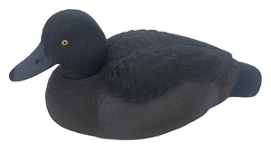 Чучело утки "Хохлатая чернеть утка". Исполнение - "рельеф". Легкое, компактное чучело хохлатой чернети, предназначенное для приманивания летящих уток. Изготовлено из полистирола (пенопласта) высокой плотности (прочный, не крошится). Голова у муляжа съемная, крепится к туловищу с помощью стального штыря. Для транспортировки голову можно убрать в специальную нишу в нижней части туловища утки, что делает данные чучела более компактными по сравнению с аналогами и позволяет брать большее кол-во. Рифленная (рельефная) поверхность с качественной (реалистичной) многоцветной покраской матовой не бликующей краской и прорисовкой пера. При попадании дроби остаются на плаву. Имеется крепление для шнура или грузила.