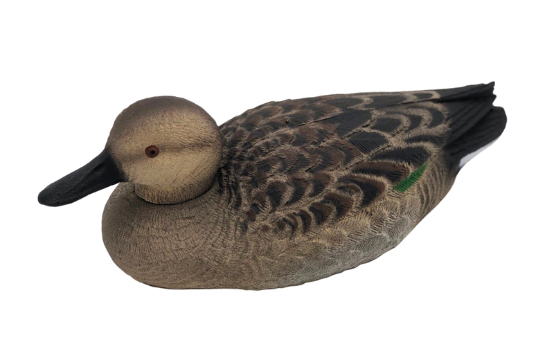 Чучело утки "Чирок-свистунок утка". Исполнение - "рельеф". Легкое, компактное чучело чирка-свистунка, предназначенное для приманивания летящих уток в процессе весенней или осенней охоты. Изготовлено из полистирола (пенопласта) высокой плотности (прочный, не крошится). Голова у муляжа съемная, крепится к туловищу с помощью стального штыря. Для транспортировки голову можно убрать в специальную нишу в нижней части туловища утки, что делает данные чучела более компактными по сравнению с аналогами и позволяет брать большее кол-во. Рифленная (рельефная) поверхность с качественной (реалистичной) многоцветной покраской матовой не бликующей краской и прорисовкой пера. При попадании дроби остаются на плаву. Имеется крепление для шнура или грузила.