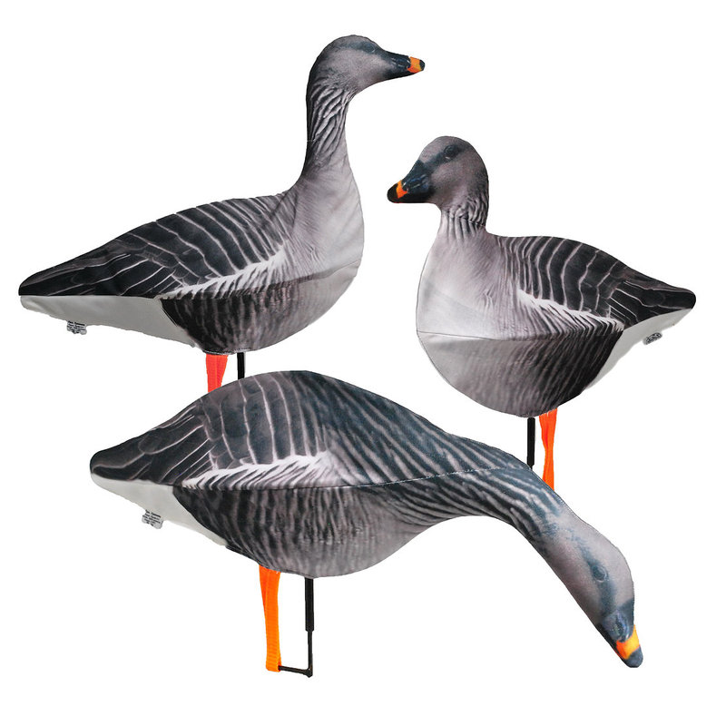 Новинка!!! Объемные складные чучела гуменника от Российского производителя! Абсолютно новый продукт не имеющий аналогов на рынке, с оригинальными конструктивными и техническими решениями. Продукция разработана на основе многолетнего опыта в охоте. Особенность чучел Seven Birds в каркасной складной конструкции. Чучела имеют надежный стальной оцинкованный каркас диаметром 4 мм. Они достаточно прочные и долговечные. На специальную ткань нанесено фотореалистичное изображение белолобого гуся. Чучела хорошо двигаются на ветру и не бликуют.
