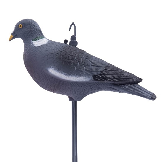 Чучела вяхиря из пластика предназначены для охоты на диких голубей. Охота на голубей разрешена в России только осенью, когда вяхири собираются в большие стаи и кормятся на полях. Весной охота не проводится. Успешность охоты на дикого голубя вяхиря зависит от правильно выбранного места, хорошей маскировки, количества и качества выставленных приманок, меткой стрельбы. Как и в охоте на гуся, принцип по выбору количества муляжей на голубиной охоте простой: чем больше приманок - тем больше вероятность успешной охоты на вяхиря. Мясо вяхиря вкусное и диетическое. Охота на вяхиря очень динамичная спортивная и при хорошей плотности птицы в угодьях может быть достаточно добычливой.