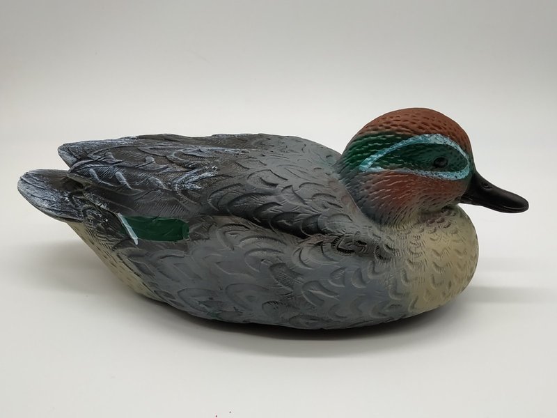 Чучело "Чирок селезень отдыхающий" сминающееся. Спящая поза (голова прижата к груди). Чучело плавающее, бескилевое, сминающееся. Дополнительно надувать не требуется. Предназначено для установки на воду или на берег водоема для подманивания уток на охоте или в декоративных целях (украшение пруда). Плавание на воде осуществляется за счет воздушной подушки под дном изделия. Снизу чучалки имеется оригинальный клапан для закачивания и спускания воздуха, который так же препятствует поступлению воды внутрь чучела. Выступающая круглая часть дна должна быть утоплена внутрь изделия. Это обеспечивает надежную устойчивость на воде. Отсутствие киля и плоское основание позволяет установливать данные чучела на землю. Чучела изготовлены из пластизоля ПВХ. Чучело мягкое на ощупь и легко сминается, что значительно уменьшает размеры чучела при транспортировке. В смятом виде займет места в 2 раза меньше чем аналогичные чучела из пластика. "Живая" реалистичная покраска, которая не выгорает на солнце и не трескается при скручивании. В передней части основания чучела имеется кольцо для подвязки шнура. При попадании дроби - держатся на плаву. Вес чучела - 210-230 грамм. Размеры чучела (д*ш*в): 27,5х12х11 см.