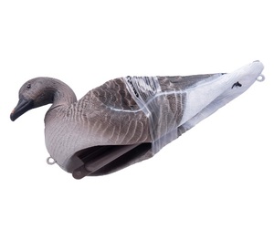 Чучела отлично переносят скручивания и другие механические воздействия, неприхотливы в использовании. Температурный диапазон применения -40 до +40 С. Легко сминаются для транспортировки, быстро собираются, занимают мало места в сложенном (смятом) виде, не бликуют. В собранном виде принимают размеры сопоставимые с размером живого гуся. Очень реалистичны и практически в точности повторяет своего живого собрата. Вес одного чучела - 550-600 грамм. Габаритные размеры (ДхШхВ): 63х21х24 см.