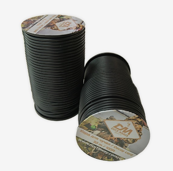 Корд (шнур) из поливинилхлорида (PVC) для установки чучел уток и гусей на воде. Это специальная серия шнуров, которые обладают повышенной прочностью и долговечностью. Данный шнур будет служить вам долгие годы, помогая устанавливать ваши приманки. Шнур из ПВХ морозоустойчив, не трескается, не гниет, не впитывает влагу, тянется, обладает высокой прочностью и не держится на воде (тонет). С данным шнуром проще работать, так как он меньше путается. Длина шнура: 30 метров (100 футов). Диаметр: 2 мм. Шнур намотан на бобину. Цвет: Черный. Вес: 220-240 гр.