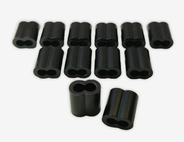 Зажимы для обжимки корда. В комплекте 12 шт. Материал: аллюминий. Цвет - черный. Вес - 10 грамм.