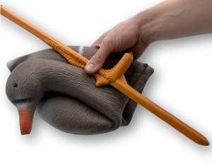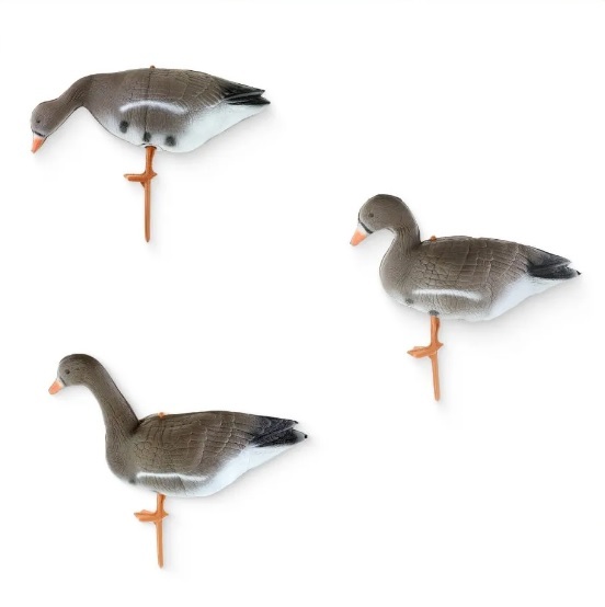 Сминаемые чучела белолобого гуся. Комплект из 10 шт. В комплекте: 6 кормящихся, 2 отдыхающих, 2 сторожевых. Чучела изготовлены из вспененного материала XPE. Очень легкие и компактные. В сложенном виде занимают мало места. Удобно носить на болото. Устанавливаются в землю на пластиковую оранжевую стойку-лапу. Длина стойки 51 см. Вес 1-го чучела без стойки 65 грамм, со стойкой - 110 грамм.