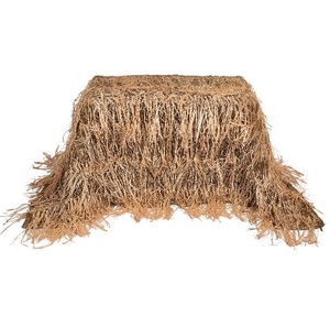 Полотно маскировочное North Way с травой рафия. Размер полотна 3х1,5 метра. Основа полотна - прочная и влагостойкая ткань оксфорд (Oxford 220) с двухсторонним принтом, на которую нашиты пучки натуральной травы Рафия (пальма с острова Мадагаскар). Натуральная трава Рафия (в отличие от натурального лыка) - прочная, стойкая к иссыханию, не осыпается и не издает сильного неприятного запаха и в то же время имеет натуральный вид. Со временем при использовании приобретает все более естественный цвет. Полотно маскировочное North Way с травой рафия не гниет, устойчиво к воздействию влаги и ультрафиолету. Маскировочный тент North Way отлично маскирует не зерновых полях и в камыше, а также защищает от осадков. По периметру маскировки имеются петли для крепления. Популярная камуфляжная расцветка NW-1 (камыш) с объемным рисунком. Тент двухсторонний - обратная сторона (без травы рафия) более светлая. Вес - 730 грамм.