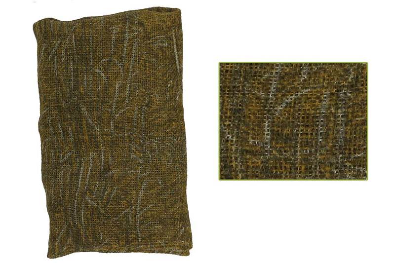Материал (мешковина) прочен и долговечен. Укрытие из камуфлированной мешковины не создает бликов на солнце, не отражает ультрафиолетовое излучение, не шуршит на ветру и не выцветает. В сложенном виде камуфляжная ткань легко умещаются в рюкзак или сумку, не занимая много места. Вес - 780 грамм.
