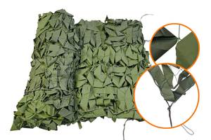 Маскировочная сеть серии Стандарт. Классическая армейская маскировочная сетка. Размер сетки 2х10 м. Площадь покрытия 20 м.кв. Затемнение не менее 60%. Вес 3,5 кг. Расцветка - темно-зеленый/светло-зеленый. Сеть изготовлена на основе капроновой сети с ячейками 50х50 мм с вплетенными лентами из специального полимерного материала светло-зеленого и темно-зеленого цветов. Окантовка выполнена из полиамидного шнура диаметром 5-6 мм с петлями для крепления сети. Цвет нити - светло-зеленый. Сетка собрана из 2-х элементов 2х5 м (крепление на пластиковые стяжки) и при необходимости может быть разобрана.