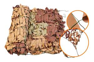 Маскировочная сеть серии Стандарт. Классическая армейская маскировочная сетка. Размер сетки 2х6 м. Площадь покрытия 12 м.кв. Затемнение не менее 60%. Вес 2,3 кг. Расцветка - темно-зеленый/светло-зеленый. Сеть изготовлена на основе капроновой сети с ячейками 50х50 мм с вплетенными лентами из специального полимерного материала серо-желтого, серо-зеленого, серо-коричневого цветов. Окантовка выполнена из полиамидного шнура диаметром 5-6 мм с петлями для крепления сети. Цвет нити - светло-зеленый. Сетка собрана из 2-х элементов 2х3 м (крепление на пластиковые стяжки) и при необходимости может быть разобрана.