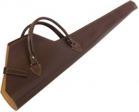 Чехол для ружья "Сайга 20С". Материал - натуральная кожа. Цвет - темно-коричневый. Есть ручка для переноски и крепления для ремня. Ремень в комплект не входит.