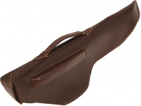 Чехол для ружья "Сайга 410К". Материал - натуральная кожа. Цвет темно-коричневый. Есть ручка для переноски и крепления для ремня. Ремень в комплект не входит.