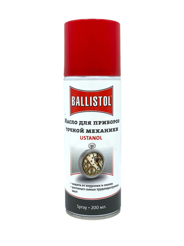 Нейтральное масло Ballistol Ustanol. Идеальное масло для приборов и точной механики. Очень маловязкое масло. Обладает чрезвычайно высокой активностью к ползучести и проникновению и крепко прилипает к металлам. Масло очищает, смазывает и предохраняет - все в одном. Служит для ухода, смазки, защиты и консервации механизмов и приборов любого рода. Надежно защищает детали из стали и железа от коррозии. Сохраняет латунь и медь от налетов. Достигая самых труднодоступных мест, ослабляет крепко сидящие соединения, винты, резьбовые соединения. У подвижных деталей сохраняет способность к скольжению. Проникает под воду и вытесняет ее. Устраняет ржавчину, старые масла и остатки любого рода. Покрывает пленкой, защищающей от влияния внешней среды. Не содержит смол и кислот. Является нейтральным, экономичным и эффективным средством. Гарантирует надежное применение от -50°C до 150°C.