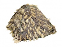 Накидка "Снежинка" с лыком. Размер накидки 3х3 метра. Предназначена для дополнительной объемной маскировки самого охотника, охотничьих укрытий, снаряжения. Представляет собой полотно из полосок синтетической ткани с рассеченным рисунком и надстроченными на него пучками лыка. Наличие лыка, обеспечивает естественную маскировку под солому и природный запах, что сильно повышает эффект маскировки. Крепление на месте осуществляется при помощи шнуров-завязок. Материалы: синтетическая ткань Taffeta PU, лыко натуральное. Расцветка: "камыш" (желтый/коричневый цвета). Вес - 800 грамм (возможно отклонение веса в пределах 150 грамм в + или -).