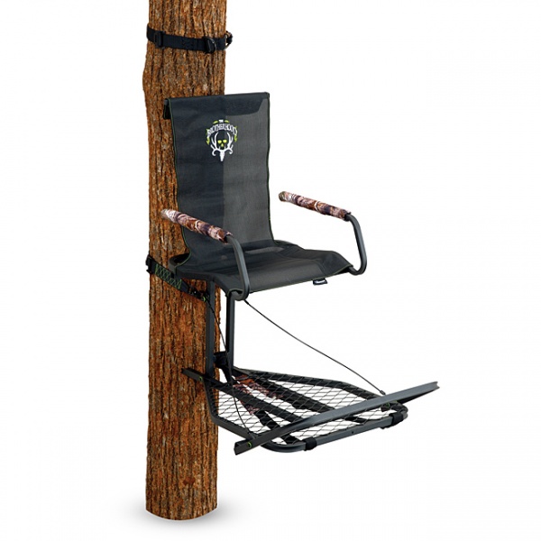 Лабаз Ameristep Brotherhood Deluxe Hang-On Stand обладает прочной и надежной конструкцией. Изготовлен из стали. Предназначен для использования одним человеком. Состоит из сиденья со спинкой, платформы для ног и набора креплений к дереву и страховочных ремней. Размер сиденья 55х43 см. Размер платформы: 61х91 см. Максимальная нагрузка на лабаз - 135 кг. Т.е. ваш вес со снаряжение не должен превышать 135 кг! Сиденье и его спинка из непрокомаемой ткани. Цвет сиденья - черный. Имеются подлокотники с мягкими съемными вставками камуфляжного цвета. Платформа имеет ограничительную подножку. Охота может вестись сидя и стоя с платформы. ОБЯЗАТЕЛЬНО использование страховочных ремней. Вес лабаза в комплекте - 14,7 кг.