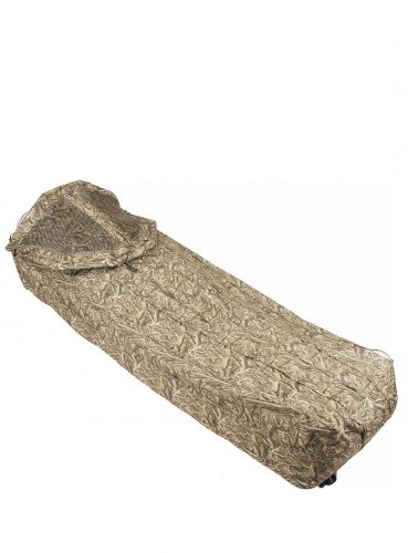 Лежачая засидка на гуся "Шилка" представляет из себя чехол из плотной синтетической ткани защитной окраски, конструктивно объединенный с лежаком. Оригинальность данной модели заключается в наличии откидывающейся назад крышки (колпака) из алюминиевой рамы и камуфляжной сетки, которая в закрытом положении накрывает голову охотника, маскируя его лицо, но не закрывая обзор. Устанавливаются за несколько секунд на землю, пашню, любую весеннюю хлябь. Установка очень проста, не требует каких-либо инструментов. Для дополнительной маскировки под конкретную местность, на поверхность засидки нашиты ленты, с помощью которых можно закрепить пучки растений, ветки с окружающей местности. Охотник находится в засидке в лежачем положении, на утеплённой полке. Рамная конструкция лежачей засидки изготовлена из прочного алюминия и рассчитана на долгий срок службы. Стенки засидок выполнены из ткани оксфорд 900D, которая не пропускает ветер и влагу, позволяя охотнику в любую непогоду (самое лучшую погоду для охоты на гусей) чувствовать себя комфортно. Пол выполнен из водонепроницаемой ткани 1200D. На раме крепятся утеплённое сиденье (лежак) из полипропилена и откидывающийся колпак, обтянутый сеткой. Мягкая спинка лежака создает комфорт при длительном лежании и предохраняет от охлаждения. В собранном виде засидка переносится за спиной на лямках, как рюкзак и приводится в рабочее положение за несколько минут. В конструкции засидки отсутствует полка для ружья. Удобная и высокоэффективная система откидной крышки позволяет за доли секунды принять положение стрельбы. Размер засидки в разложеном состоянии (ДхШхВ): 190х63х60 см. Вес нетто: 4,9 кг. Расцветка: "Стерня" (NW-1).