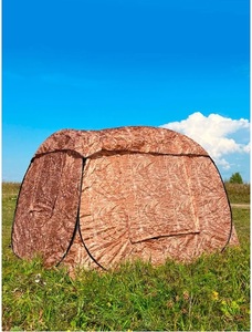 Засидка автомат (скрадок) для охоты на гуся и утку. Автоматическая быстроразборная конструкция. Собирается одним человеком за пару минут. Засидка имеет два входа и 2 больших окна. Дна нет, верх съемный. Размер засидки в разобранном виде 190х190х135 см, что позволяет свободно разместиться 2 охотникам. Стенки и крыша изготовлены из непродуваемой ткани оксфорд (ткань шуршит). Цвет - камыш. По периметру нашита ткань для крепления местной растительности. Упаковывается в чехол на молнии с лямками для переноски за спиной. Габариты в собранном виде: 65х65х5 см. Вес в чехле 3,4 кг. В комплекте шнур и колья для крепления к земле.