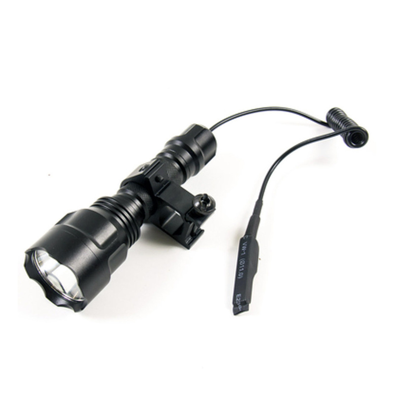 Компактный аккумуляторный подствольный фонарь SibRay NK-608 с американским светодиодом Cree T6XML. Наличие обычной кнопки в задней части фонаря позволяет использовать его как обычный ручной фонарь, а выносная кнопка и кронштейн позволяют крепить фонарь к оружию и использовать в качестве подствольного.