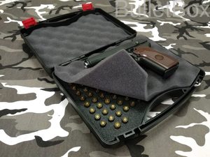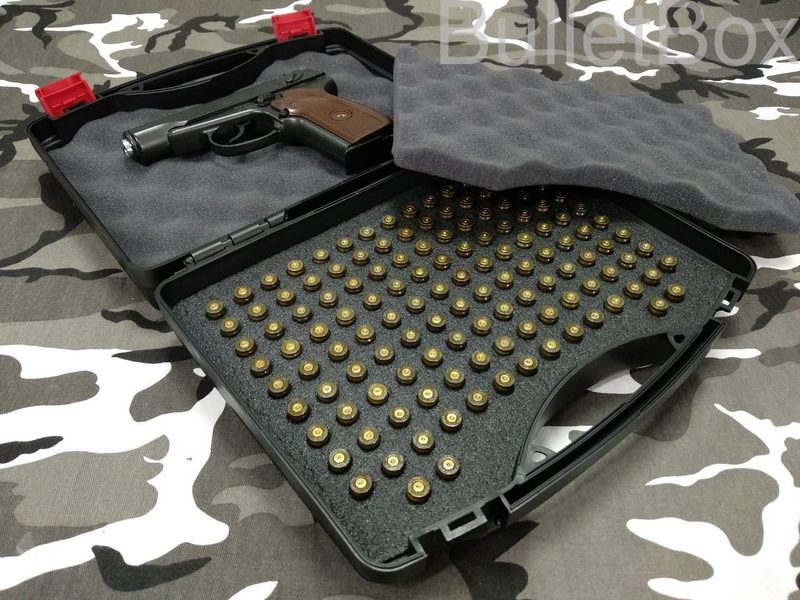 Пластиковый кейс (бокс, коробка, ящик) для хранения пистолета и патронов к нему калибра: 9PA, 9х18, 9х19, 10x22, 10x23, 380MEGUM. Данный кейс рассчитан на 130 патронов. Пистолет от патронов отделен вставкой типа "волна", поэтому они не соприкасаются. Размеры бокса: 275х225х80 мм. Вставка из химически вспененного пенополиэтилена, которая надежно фиксирует патрон, хорошо сохраняет форму и не впитывает влагу. Даже в перевернутом состоянии с открытой крышкой кейс можно трясти - патроны не вылетят, не гремят и не путаются. Кейс легко помещается в рюкзак. При падении внутренняя вставка демпфирует удар. Хорошо подойдет как для транспортировки пистолета и патронов к нему, так и для хранения их дома. Пластиковые фиксаторы-защелки. Вес - 460 грамм. Цвет черный.