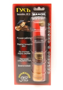 Манок на белолобого гуся "Манок Иваныч" "Белолобик SE13" из коллекции SE. Манок изготовлен в Сибири вручную из плотных пород дерева. Предназначен для подманивания белолобых гусей на охоте. Обладает реалистичным звуком. Подойдет как новичку, так и уже опытному охотнику. Воспроизводит разнообразные фазы, имитирующие крики белолобых гусей. Регулируется с помощью перемещения клина по тоновой доске. Имеет простую и надежную конструкцию. Влагостойкий. Прост в настройке. Индивидуально собран и настроен специалистом. Полностью готов к работе. В комплекте запасной язычок. Имеет красочную упаковку в блистере и станет отличным подарком охотнику на гусей. Вес - 20 грамм. Размеры манка: 100х25 мм.