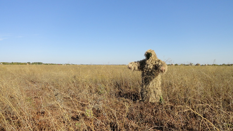 Маскировочный халат "Друид". Предназначен для маскировки на охоте, тактических играх или использования военными и сотрудниками силовых структур. Одевается поверх основной одежды и представляет собой халат по крою с капюшоном. Основа маскировочного халата "Друид" мелкоячеистая трикотажная сетка из 100% полиэстера, на которую нашиты маскирующие элементы из джутовой нити, которые создают объемный эффект, "размывая" фигуру человека. В отличие от лыка, джутовая нить не осыпается, более долговечна и практична в использовании. На рукава, плечи и капюшон дополнительно нашиты петли из резинок, для дополнительной маскировки местной растительностю (травой, ветками). Капюшон имеет утяжку по объему головы и овалу лица. Застежка куртки центральная на пуговицы с киперной лентой. Вес халата - 1900-2100 грамм. Халат упакован в мешок из камуфляжной ткани оксфорд с утяжкой и лямкой для переноски.