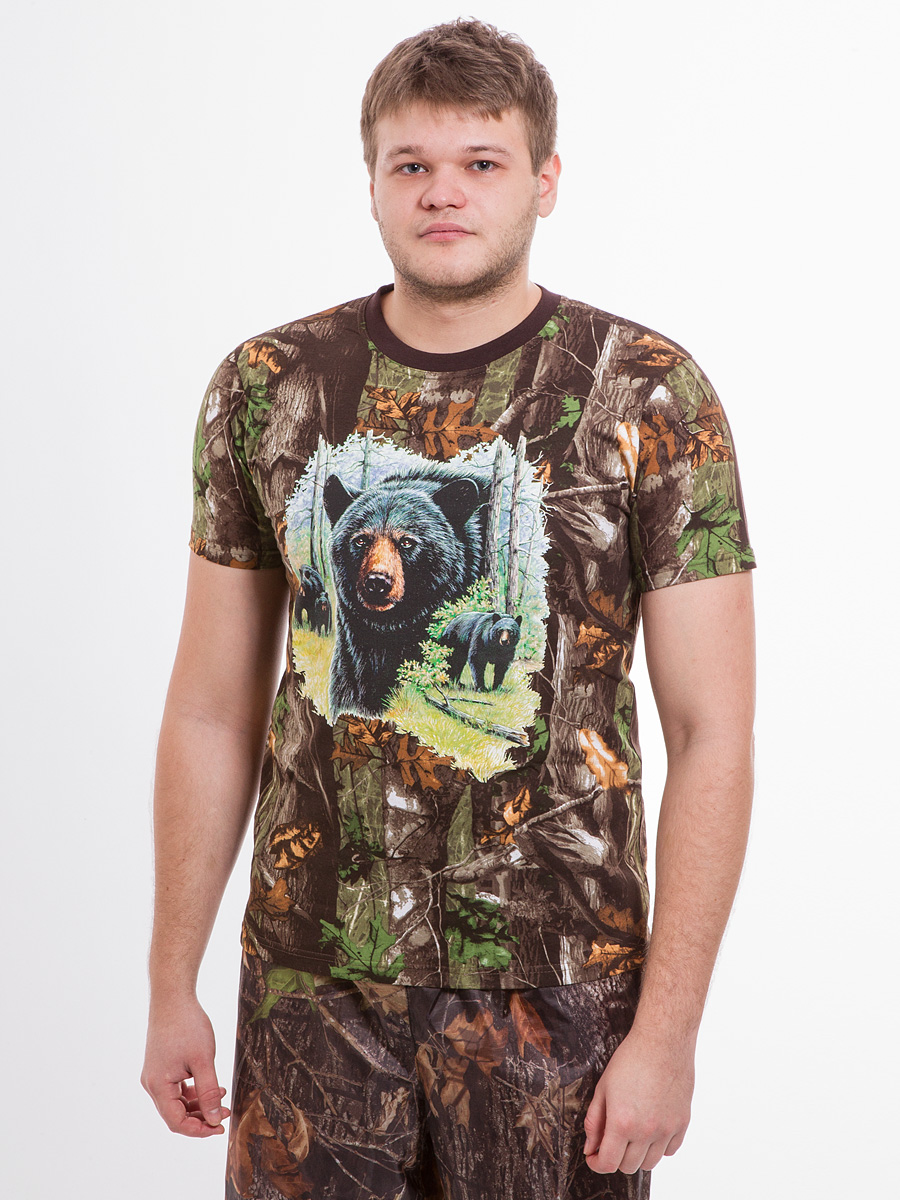 Камуфлированная футболка для охотников серии "Хантер". Футболки изготавливаются с использованием первосортной хлопчатобумажной пряжи, прядильных машин высокого класса при постоянном контроле качества изделий. Полотно проходит специальную обработку для придания ему особой мягкости и шелковистости. Воротник не деформируется в процессе носки за счет эластичности, обеспечиваемой технологии вязки переплетением "ластик" высокого класса.Материал - 100% хлопок. На лицевой части футболки, методом термопечати нанесено оригинальное изображение. Футболки прекрасно носятся, сохраняют форму, цвет и не линяют даже при многократной стирке.Поставляется в фирменной упаковке. В ассортименте имеются футболки размеров: 48-56.