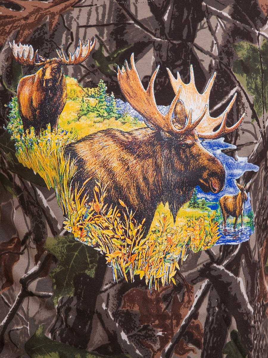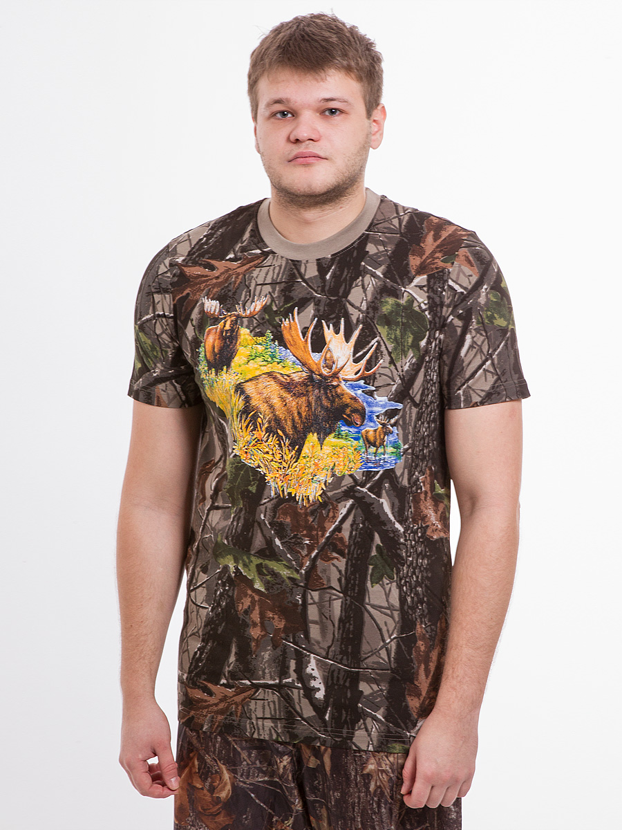 Камуфлированная футболка для охотников серии "Хантер". Футболки изготавливаются с использованием первосортной хлопчатобумажной пряжи, прядильных машин высокого класса при постоянном контроле качества изделий. Полотно проходит специальную обработку для придания ему особой мягкости и шелковистости. Воротник не деформируется в процессе носки за счет эластичности, обеспечиваемой технологии вязки переплетением "ластик" высокого класса.Материал - 100% хлопок. На лицевой части футболки, методом термопечати нанесено оригинальное изображение. Футболки прекрасно носятся, сохраняют форму, цвет и не линяют даже при многократной стирке.Поставляется в фирменной упаковке. В ассортименте имеются футболки размеров: 48-56.