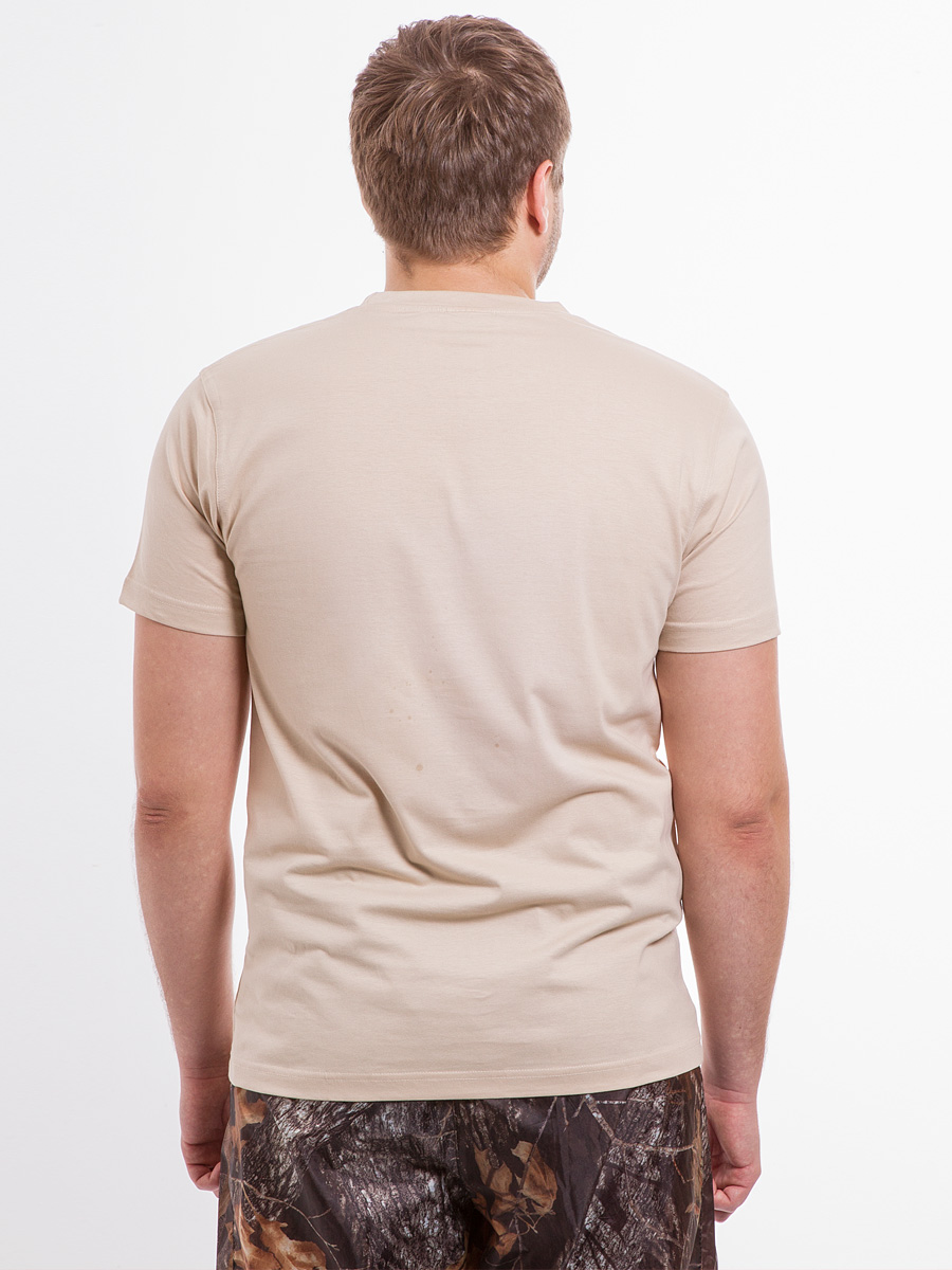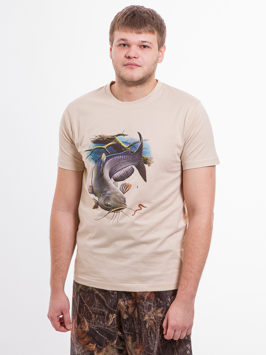 Классическая футболка светло-бежевого цвета серии "Рыбалка и охота" с рисунком на груди. Футболки изготавливаются с использованием первосортной хлопчатобумажной пряжи, прядильных машин высокого класса при постоянном контроле качества изделий. Полотно проходит специальную обработку для придания ему особой мягкости и шелковистости. Воротник не деформируется в процессе носки за счет эластичности, обеспечиваемой технологии вязки переплетением "ластик" высокого класса. Материал - 100% хлопок. На лицевой части футболки, методом термопечати нанесено оригинальное изображение. Футболки прекрасно носятся, сохраняют форму, цвет и не линяют даже при многократной стирке.Поставляется в фирменной упаковке. В ассортименте имеются футболки размеров: 46-54.