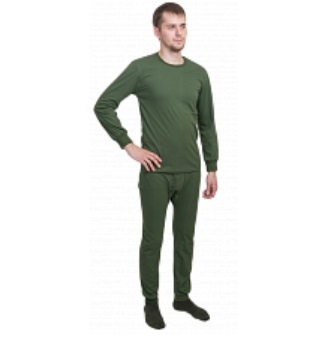 Комплект нательного белья с начесом. Аналог армейского нательного белья. Одевается непосредственно на тело человека под основную одежду и предназначено для создания благоприятных гигиенических условий. В комплект входит: штаны и фуфайка. Материал - 100% хлопок. Цвет: олива. Вес - 530 грамм.