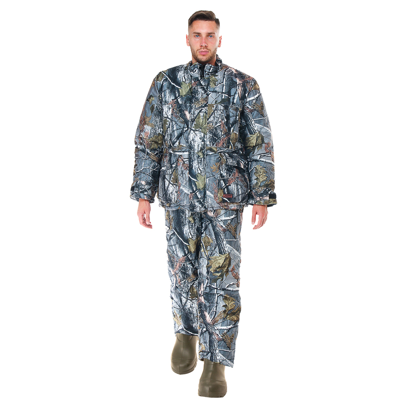 Универсальный зимний костюм для рыбалки, охоты и активного отдыха на природе. Костюм утепленный из мембранной ткани. Состоит из куртки и полукомбинезона. Ткань костюма "Алова" с мембранным покрытием не продувается ветром, отталкивает влагу, замедляет потери тепла, пропускает испарения, не теряет своих свойств при низких температурах (до -30°С) и не шуршит. Утеплитель Radotex: куртка 450 гр/м2, полукомбинезон 300 гр/м2. Подклад (спинка и полочки): Polar Fleece 180 гр/м2. Температурный режим использования до -30 С. Нижняя часть штанин полукомбинезона с внутренней стороны имеет снегозащитные непромокаемые гетры. Цвет: "Серый лес". Вес костюма: 3000-3400 грамм.