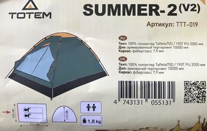 Легкая бюджетная двухместная однослойная туристическая палатка Totem Summer 2 (V2) арт.TTT-019. Подходит для простых и непродолжительных походов выходного дня и отдыха на природе в теплое время года.