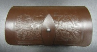 Подсумок на 12 патронов 12 калибра. 2 ряда на 6 патронов каждый. Сверху подсумок закрывается клапаном на шпенек. Материал - натуральная кожа с тиснением. Цвет - темно-коричневый. Вес - 150 грамм.