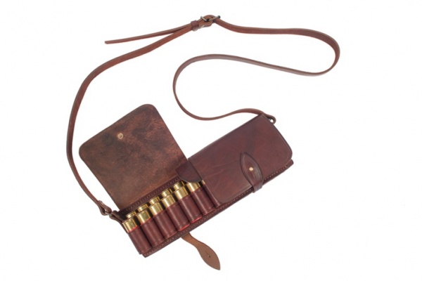 Закрытый патронташ из кожи на 24 патрона 12 калибра. Патронташ входит в состав коллекции "Хольстер 25 лет". Материал - натуральная кожа премиум класса. Два ряда ячеек под патроны (по 12 патронов в каждом ряде), которые закрываются сверху двумя клапанами. Наличие клапанов позволяет защитить патроны от непогоды. Размеры патронташа: длина - 310 мм, ширина - 100 мм, толщина - 60-70 мм. Патронташ может носиться на длинном ремне через плечо или через шею (входит в комплект), а также навешиваться на поясной ремень шириной до 50 мм (в комплект не входит), плечевой ремень при этом, будет играть роль разгрузки. Ширина плечевого ремня - 2 см. Благодаря наличию страховочной планки в нижней части ячейки патрон всегда останется в гнезде даже, если кожа растянется в процессе эксплуатации. Вес патронташа - 550 грамм. Цвет - коричневый. Каждое изделие имеет гравировку и упаковано в пропитанную воском бумагу.