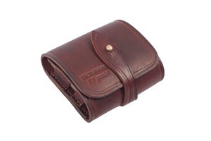 Закрытый поясной подсумок из кожи на 10 патронов калибра 223REM и его аналоги (6х47 мм, 5,6х50 мм, .222REM, 5,56х45 мм) с максимальной длиной патрона до 60 мм. Подсумок входит в состав коллекции "Хольстер 25 лет". Материал - натуральная кожа премиум класса. 2 блока по 5 патронов. Сверху подсумок закрывается клапаном, который защищает патроны от непогоды. Размеры подсумка: 10,5х9,5 см. Подсумок может навешиваться на поясной ремень шириной до 50 мм. Двухрядная ячейка надежно фиксирует патрон в гнезде. Вес подсумка - 120 грамм. Цвет - коричневый. Каждое изделие имеет гравировку и упаковано в пропитанную воском бумагу.