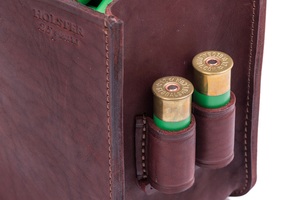 Поясная открытая сумка-патронташ на 50 гладкоствольных патронов из коллекции "Хольстер 25 лет". Предназначена для стендовой стрельбы. В основное отделение сумки россыпью помещается до 50 патронов 12 калибра. Дополнительно на боковой стенке сумки имееются отдельные ячейки еще на 2 патрона. Сумка предназначена для ношения на поясе на ремне шириной до 50 мм. Цвет - коричневый. Вес - 340 грамм.