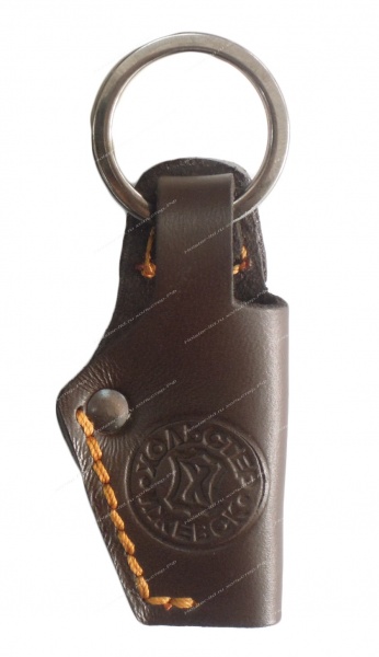 Брелок "Кобура". Отличный сувенир или подарок охотнику. Материал - натуральная кожа. Длина брелка с кольцом - 8 см. Цвет: коричневый.