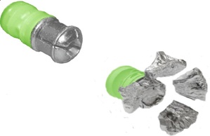 При попадании в цель головная часть разрывается на четыре сегмента. Благодаря сравнительно большому весу такие осколки расходятся внутри цели в разных направлениях и проникают достаточно глубоко увеличивая площадь поражения и усиливая болевой эффект. Действие пули внутри цели напоминает осколочное. При попадании в цель она образует не глубокий, но очень широкий "раневой канал" с многочисленными ответвлениями и сильно поражает ткани вокруг него, отдавая 100 % своей кинетической энергии. Совмещает достоинства экспансивной и осколочной пули. Известна как пуля Ширинского-Шихматова или пуля ШШ.